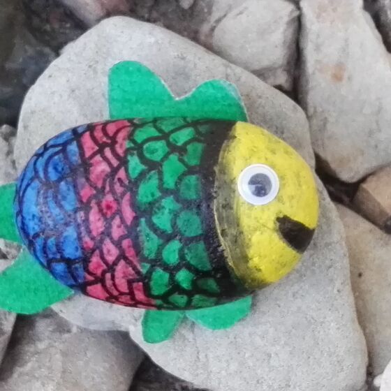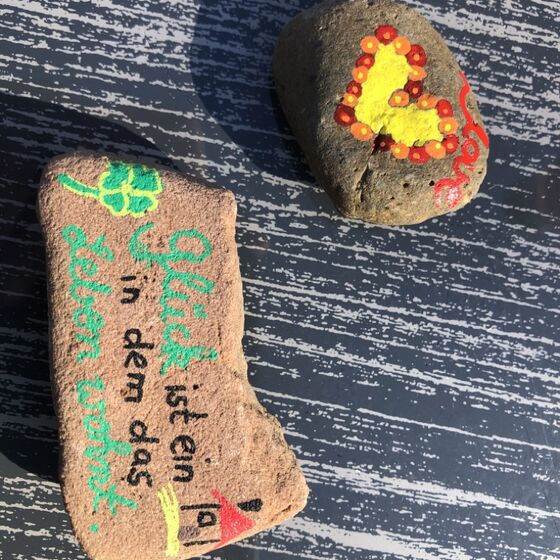 Such dir/Suchen Sie sich beim nächsten Spaziergang einen gut bemalbaren Stein.
